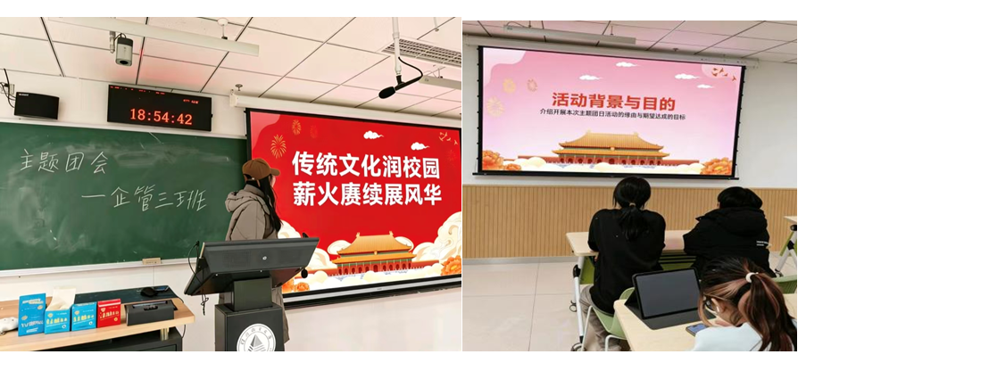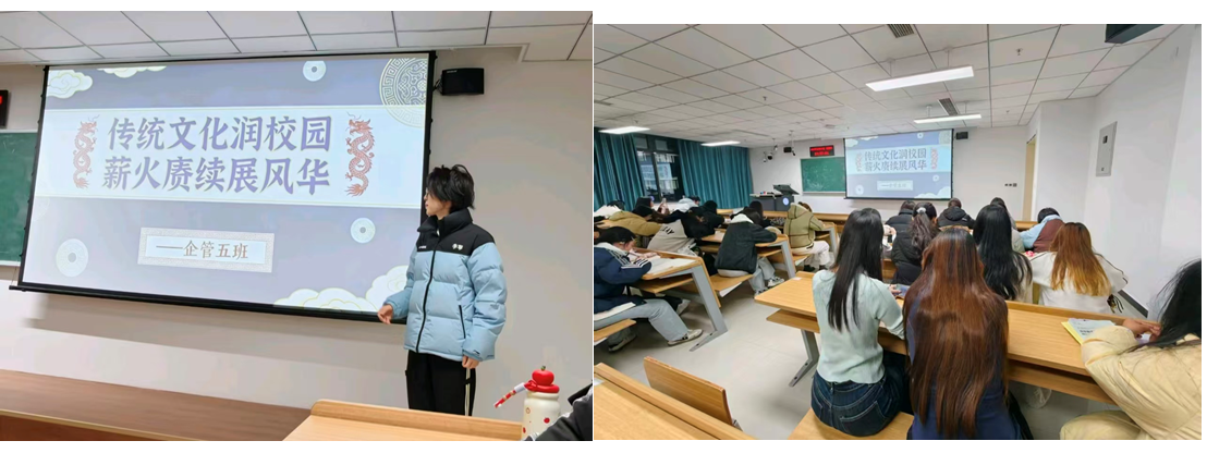 2025级工商管理类(企业管理方向)三班团支部组织全体成员共同诵读《论语》中“学而时习之”“有朋自远方来”等经典章节,以及《将进酒》《水调歌头·明月几时有》《声声慢》等诗词名篇。随后,小组代表结合学习生活分享感悟,展现出青年一代对传统文化的思考与价值认同。