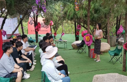 在崆山白云洞的树荫下,员工们倾听了旅游管理专业行业导师、临城县锦临旅游开发集团有限公司总经理胡博女士讲解的旅游企业管理实践课程。胡经理从旅游企业党建工作、人力资源管理工作、市场营销工作、新产品开发工作等多个方面展开讲解。她语言生动、实践性强,深深吸引了员工。在课堂上,员工们积极与胡总展开互动,针对旅游行业发展现实问题进行交流,特别是旅游景区直播、青年人提干等。通过这种产教融合的教学模式,老师和员工都收益颇丰。